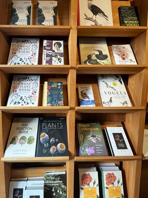 De postbode leverde een pak verse titels voor onze cadeau- en boekenshop. Op de planken vind je gespecialiseerde Engelstalige publicaties zoals The Botanical City, What Plant Where Encyclopedia en uit de drukkerij van Kew Gardens: Napoleon's Garden Island, The Apothecay's Garden of The Essential Tree Selection Guide.